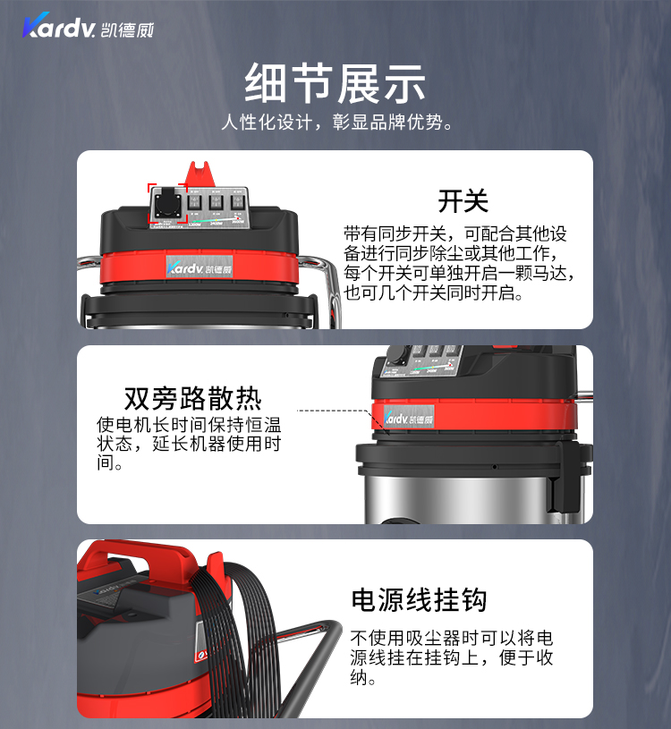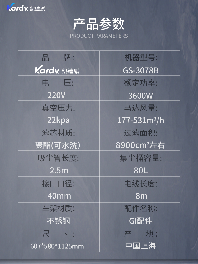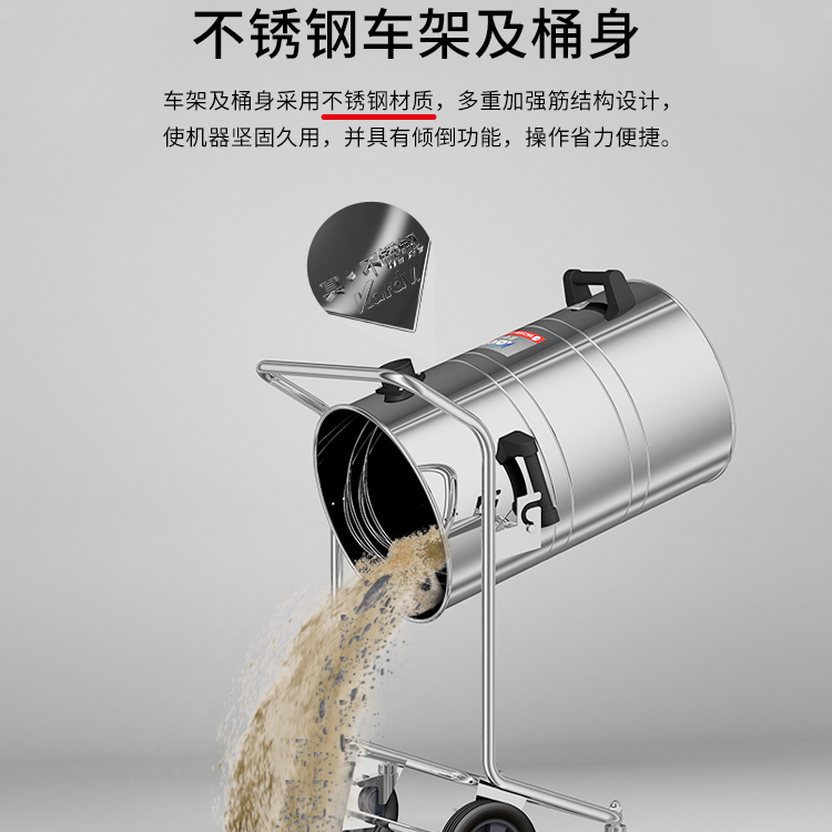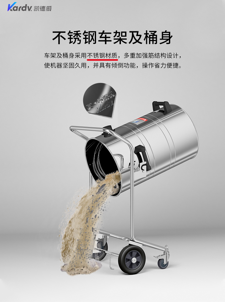 GS-3078B是一款工業(yè)型吸塵器,集塵桶為80L,為不銹鋼材質(zhì),配有不銹鋼車架,在移動時輕巧方便;可以用在工廠、倉庫或建筑工地等場所清理灰塵等,在商業(yè)環(huán)境中也可以使用。