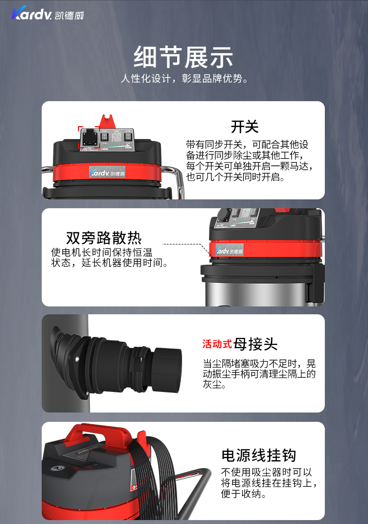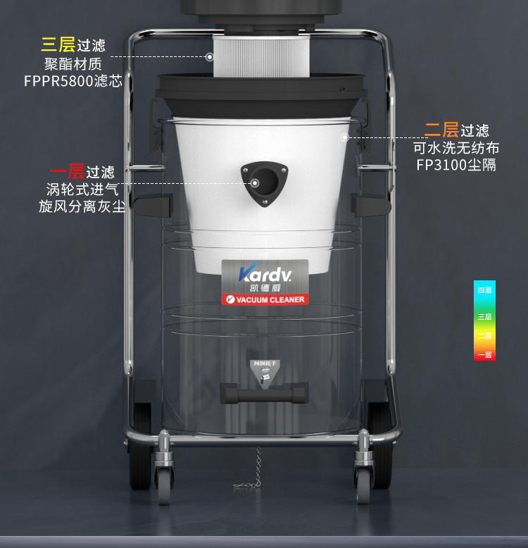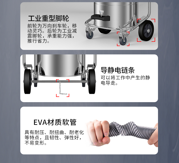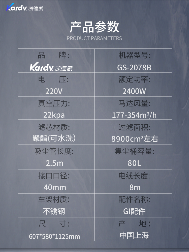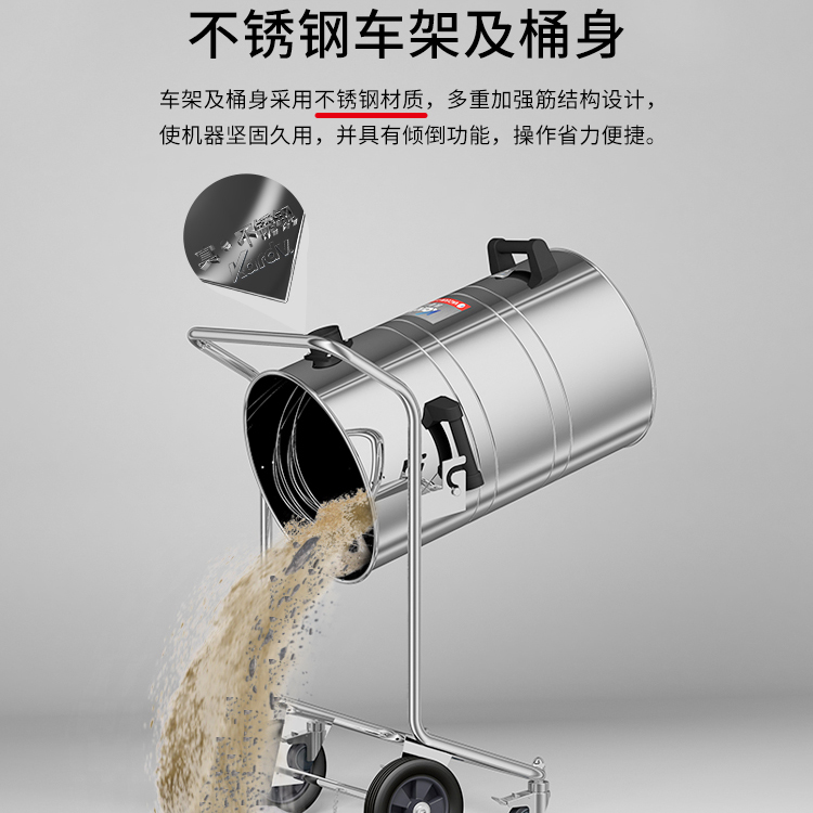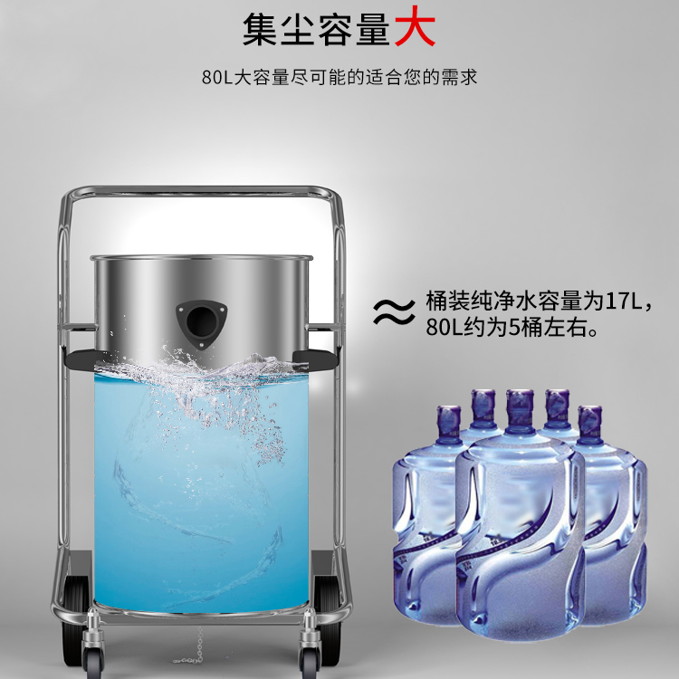 GS-2078B是一款工業(yè)型吸塵器,集塵桶為80L,為不銹鋼材質(zhì),配有不銹鋼車架,在移動(dòng)時(shí)輕巧方便;可以用在工廠、倉(cāng)庫(kù)或建筑工地等場(chǎng)所清理灰塵等,在商業(yè)環(huán)境中也可以使用。