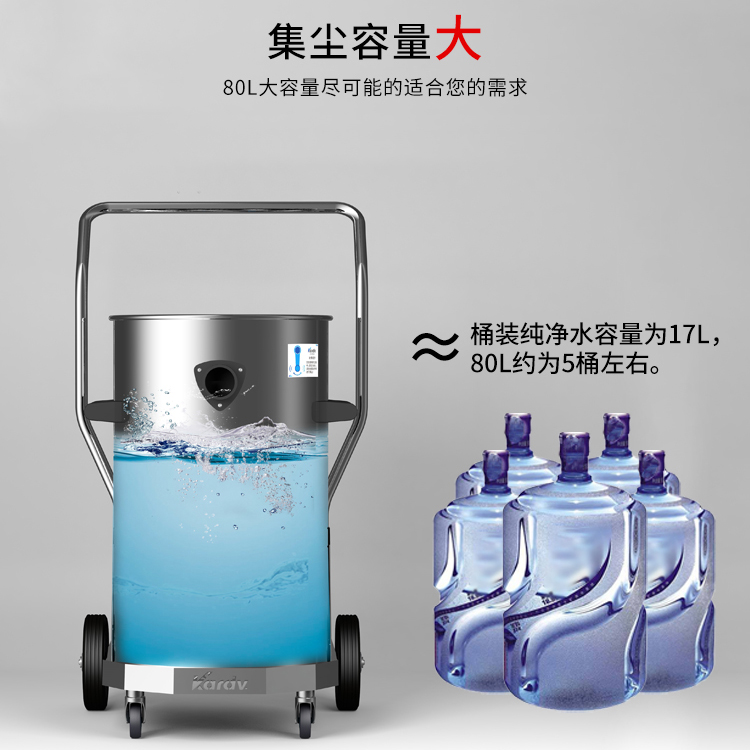 DL-3078B是一款工商業(yè)吸塵器,有3顆馬達,可單獨或聯(lián)合開啟;集塵桶為80L,為不銹鋼材質(zhì),配有不銹鋼車架,在移動時輕巧方便;配有手動晃動振塵,在使用的過程中,左右晃動振塵手柄就可以起到清理過濾器的作用;可以用在工廠、倉庫等場所清理灰塵等,在商業(yè)環(huán)境中也可以使用。