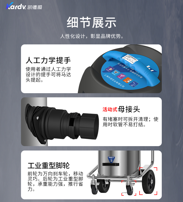 DL-1245是一款干濕兩用型吸塵器,集塵桶為45L不銹鋼材質(zhì);散熱上采用上下氣道分離設(shè)計(jì);配有置物架,可以防止工具和配件,方便使用;可以用在倉庫、廠房等;也可與其它產(chǎn)品配套使用,也可用作將廢料收集;也可使用在普通的商業(yè)、企業(yè)環(huán)境,比如一般的辦公室、客房等。