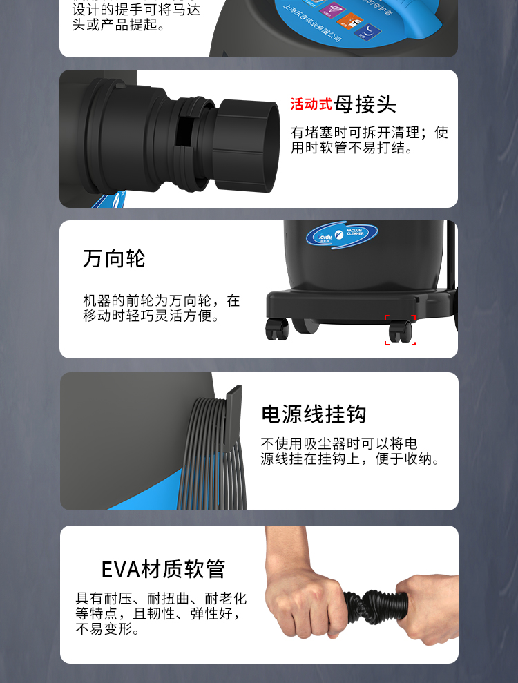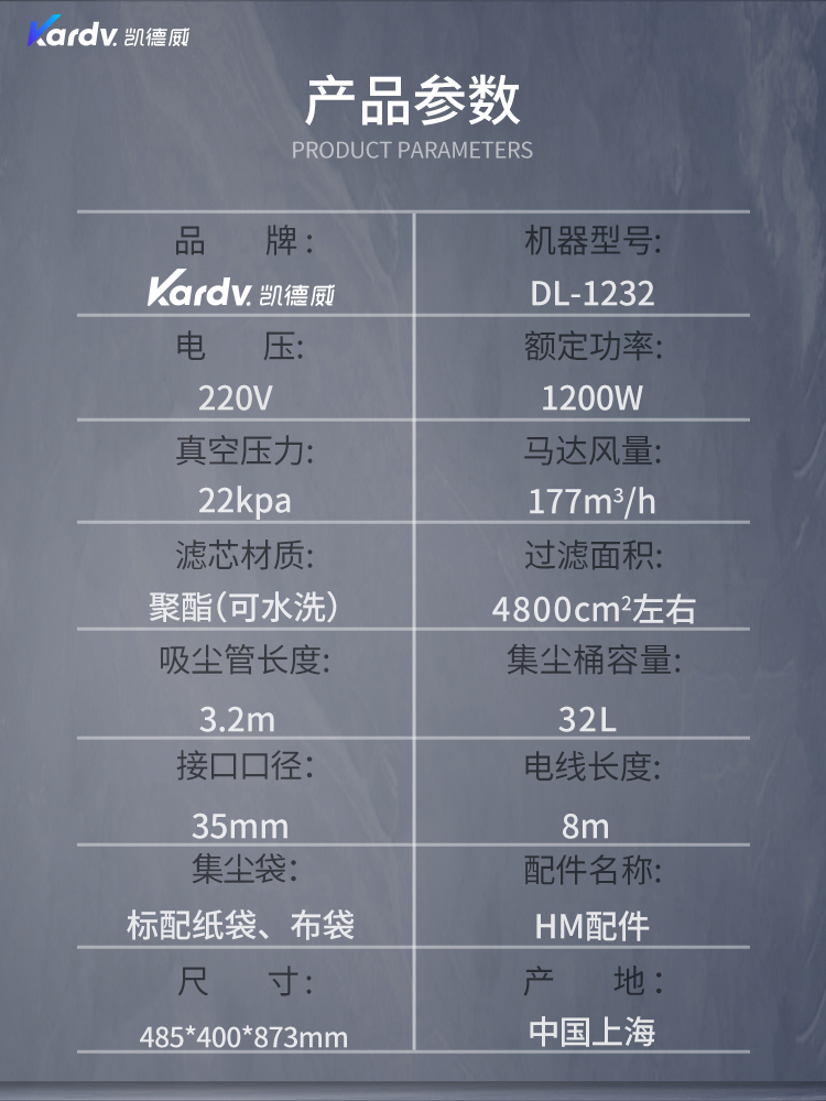 DL-1232是一款干濕兩用型吸塵器,集塵桶為32L;散熱上采用上下氣道分離設(shè)計(jì);配有置物架,可以防止工具和配件,方便使用;可以用在倉庫、廠房等;也可與其它產(chǎn)品配套使用,也可用作將廢料收集;也可使用在普通的商業(yè)、企業(yè)環(huán)境,比如一般的辦公室、客房等。