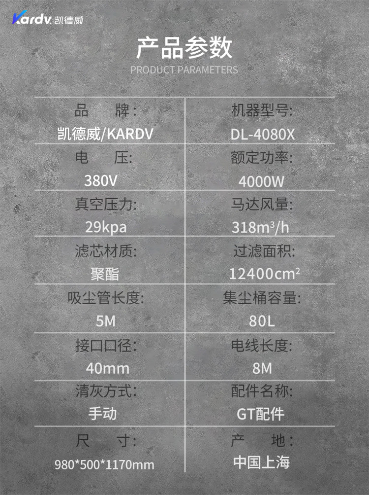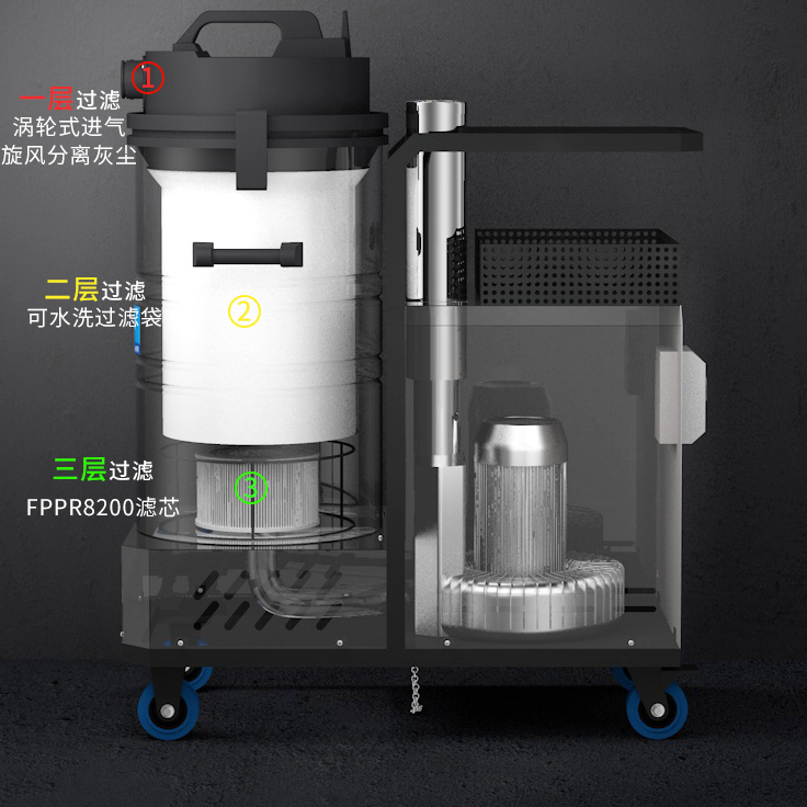 DL-4080X由我司設(shè)計(jì),區(qū)別常規(guī)吸塵器的進(jìn)氣方式,采用下進(jìn)氣原理,在吸細(xì)小粉塵、紡織廠棉絮、棉絲等容易堵塞過濾器的垃圾時(shí),使大部分垃圾直接進(jìn)入布袋過濾,少量物質(zhì)再經(jīng)過濾器二次過濾,這樣解決了過濾器易堵塞的問題。適用于工廠車間、打磨行業(yè)細(xì)粉塵的清理;紡織行業(yè),造紙行業(yè)等生產(chǎn)過程中產(chǎn)生的棉絮、紙屑等較輕且有吸附性物質(zhì)的清理。具體請咨詢銷售人員。